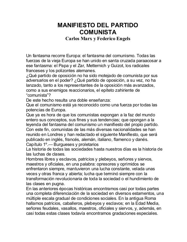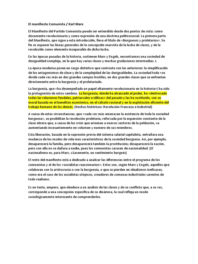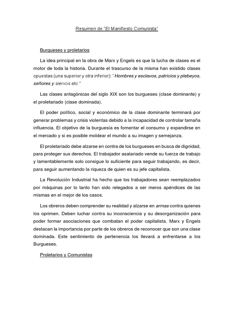Resumen Del Manifiesto Comunista De Marx Docsity