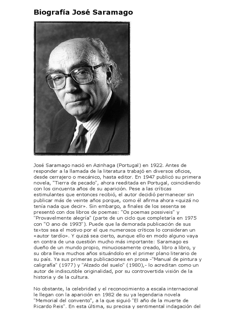 Jose Saramago Biografia Y Obras Resumenes