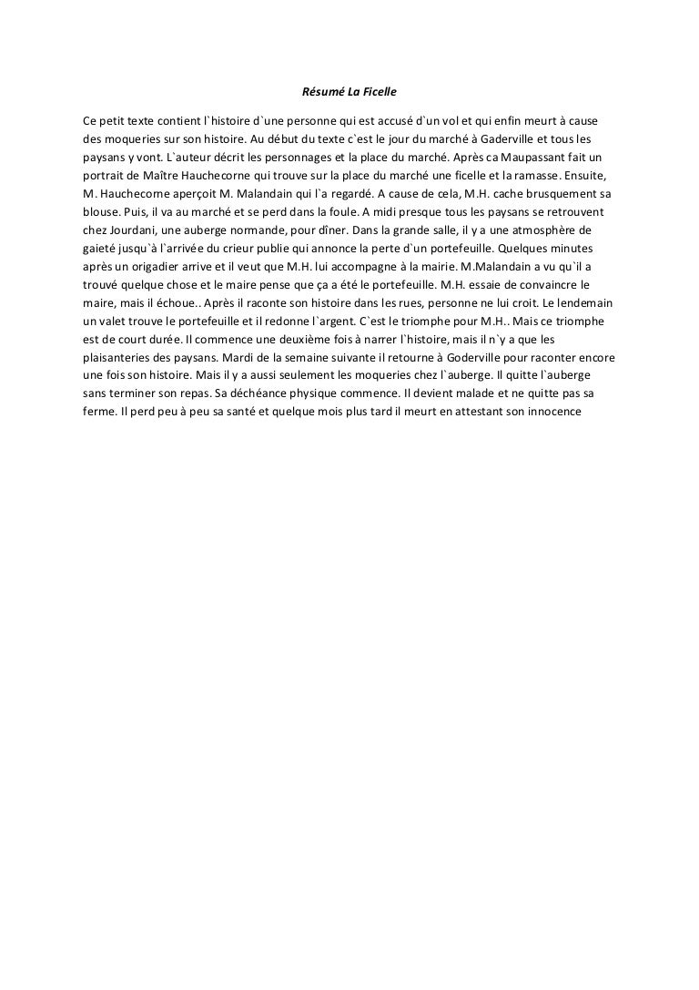 B Résumé De La Ficelle Ce petit texte contient lhistoire dune personne qui est accusé dun vol et qui enfin meurt à cause des moqueries sur son histoire. La boîte à merveille. Plus tard un crieur public annonce la perte dun portefeuille.