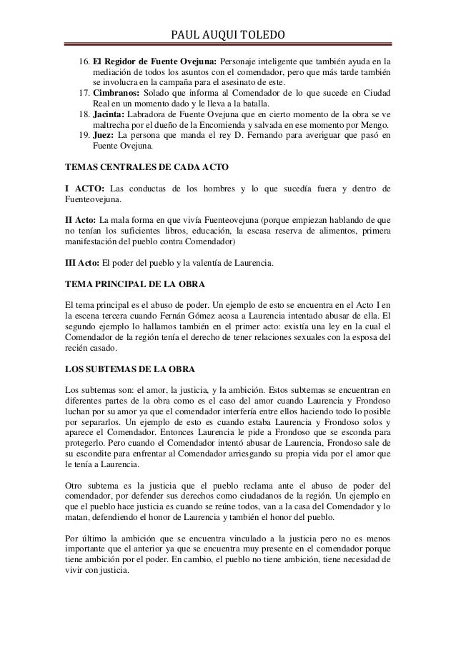 La obra empieza en Fuente Ovejuna con una mujer llamada Laurencia que quiere casarse con Frondoso. Fuenteovejuna es una obra teatral escrita en verso perteneciente al Siglo de Oro español escrita por Lope de Vega entre 1612 - 1614 y publicada en Madrid en 1619. Ad Top Resume Builder Build a Perfect Resume with Ease.