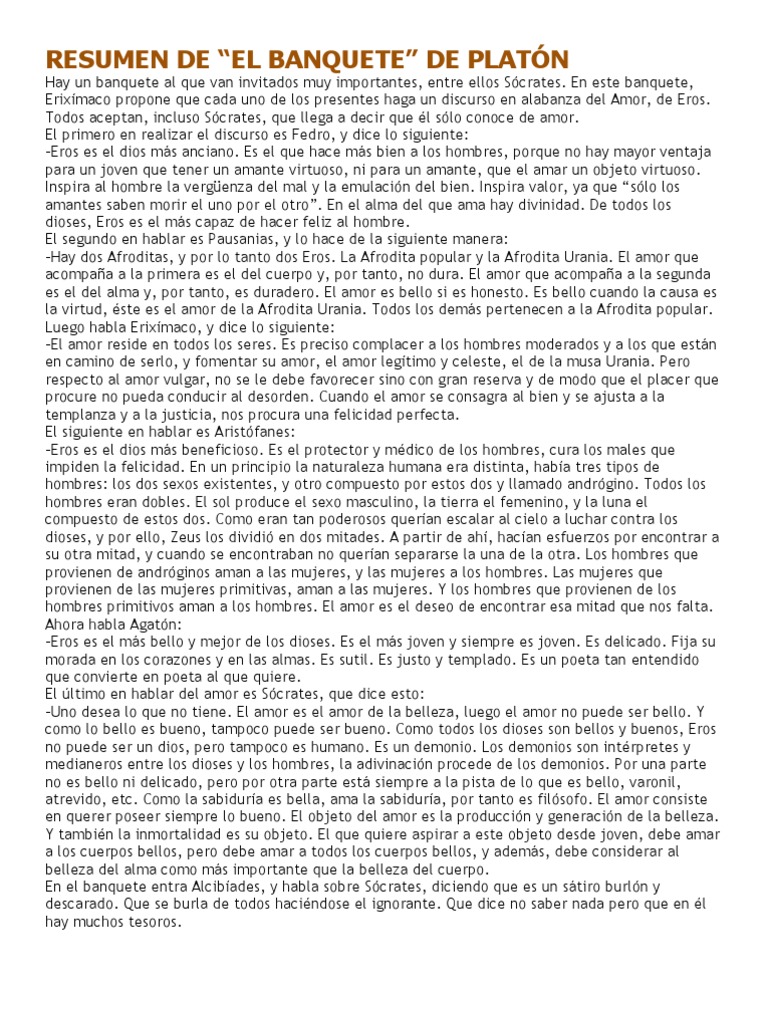 El Banquete De Platon En Word Apuntes De Historia Docsity