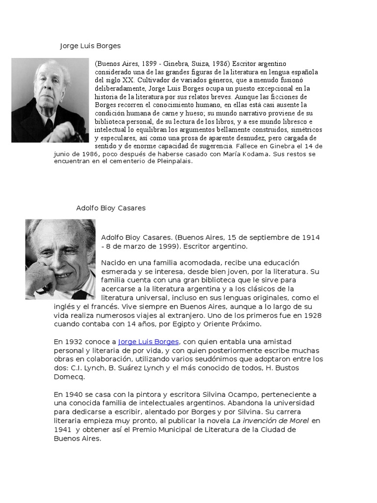 Jorge Francisco Isidoro Luis Borges Buenos Aires 24 de agosto de 1899 Ginebra 14 de junio de 1986 fue un escritor argentino uno de los autores más destacados de la literatura del siglo XX. El muerto de Jorge Luis Borges aparecido originariamente en El Aleph e incluido más tarde en su Antología Personal se integra en la constante de temas humanos que sus ficciones encierran. El muerto relato de Jorge Luis Borges incluido en El Aleph.