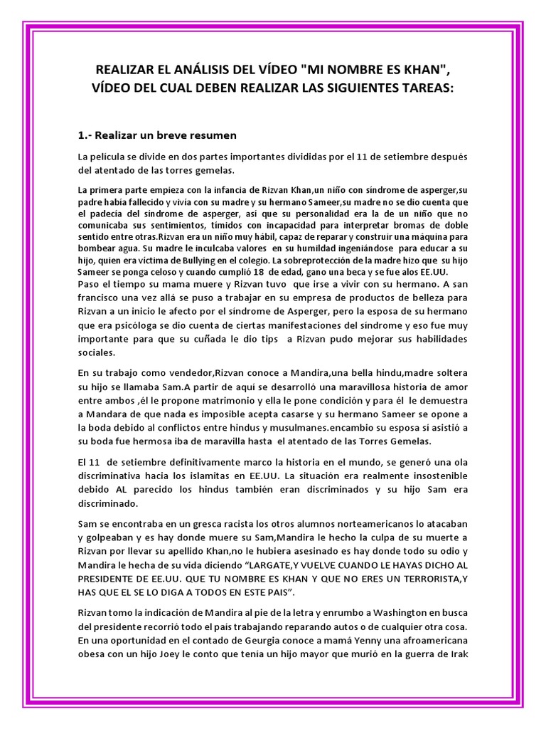 ANLISIS DE MATERIAL AUDIOVISUAL. Trata de Rizwan Khan quien padece el síndrome de Asperger. La obra la Madre guarda cierta relación con la película MI NOMBRE ES KHAN ya que al resumir un poco la obra rescatando la idea principal que deseamos resaltar en esta se observa el caso de una Madre Pelagia Vlasor que apegada a ser una madre abnegada y entregada al cien por ciento a su familia sobre todo por el temor que siente a.