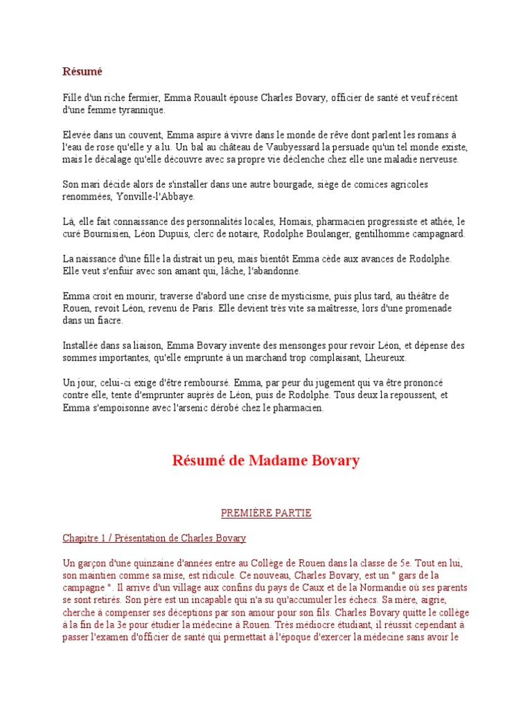 Posted in Uncategorized on April 2 2021Uncategorized on April 2 2021. Description du résumé sur Madame Bovary Gustave Flaubert Ce document propose un résumé clair et détaillé de Madame Bovary de Flaubert dont voici un extrait.