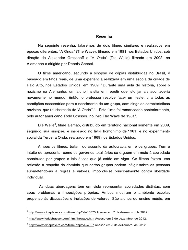 Resenha Critica A Onda 2008 Pdf Baixar Pdf De Docero Com Br