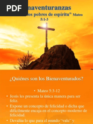 3 a Bienaventurados los b pobres en espíritu porque de ellos es el reino de los cielos. Regocijaos y alegraos porque vuestra recompensa en los cielos es grande porque así persiguieron a los profetas que fueron antes que vosotros Mt 51112. Nuestros oyentes pueden tener ideas preconcebidas de su significado o el escepticismo de nuestra capacidad de decir nada nuevo sobre este tema.