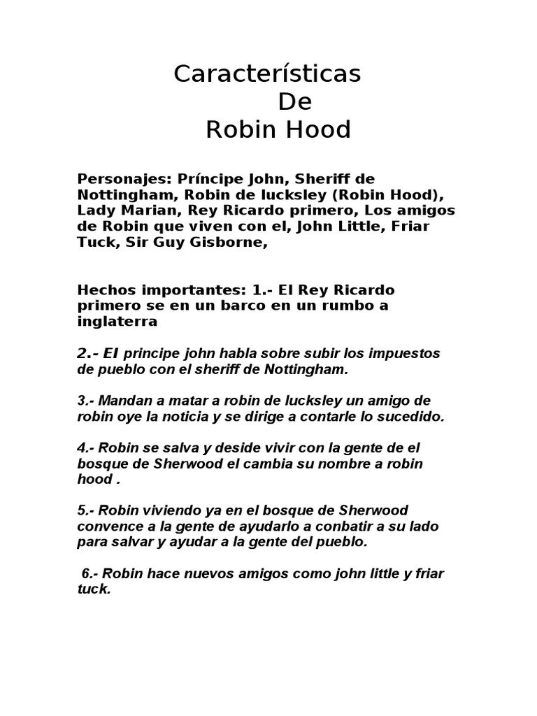 Ad Top Resume Builder Build a Perfect Resume with Ease. Robin de Locksley Robin Fitzhood o Robin Hood son sólo algunos de los nombres atribuidos históricamente al popular arquero de Sherwood cuya historia hunde sus raíces en una serie debaladas y leyendas medievales inglesas que nos presentan inicialmente a un simple salteador de caminos para convertirlo con el tiempo en un proscrito justiciero y finalmente en un noble despojadoinjustamente de. La leyenda dice que el popular Robin Hood les despojaba de sus pertenencias a los ricos para darles a los necesitados y que vivía con sus hombres jubilosos y su damisela Marion en el bosque de Sherwood pròximo a Nottingham.