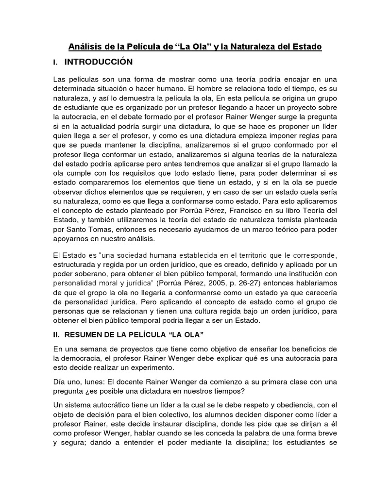 Analisis De La Pelicula De La Ola Y La Naturaleza Del Estado Estado Politica Teoria