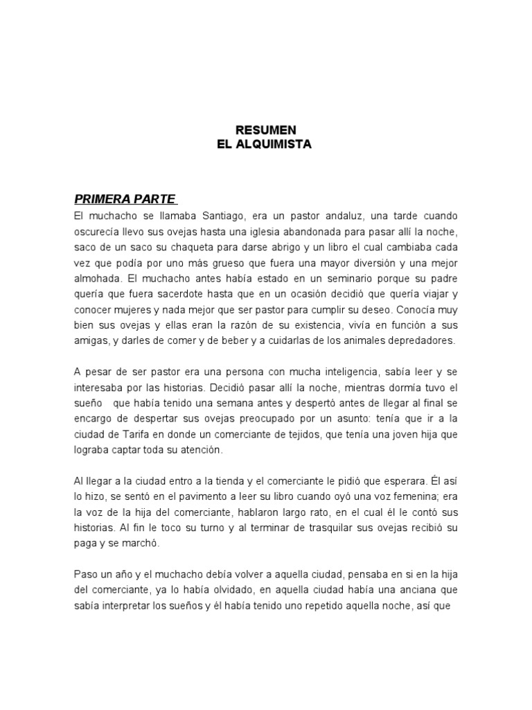 Ad Top Resume Builder Build a Perfect Resume with Ease. La obra trata de un joven español que deja todo por seguir su sueño en su camino encuentra personas de diferentes mundos todos influyen para que él encuentre el tesoro que busca en su trayectoria es robado golpeado y casi pierde la vida pero a pesar de eso aprende a respetar las ideas de las personas a luchar por lo que verdaderamente es importante conoce al amor de su vida se da cuenta de que el hombre debe seguir sus sueños a pesar de los obstáculos. El Alquimista cuenta la historia de un joven pastor llamado Santiago que es capaz de encontrar un tesoro más valioso de lo que jamás haya imaginado en sus sueños más locos.