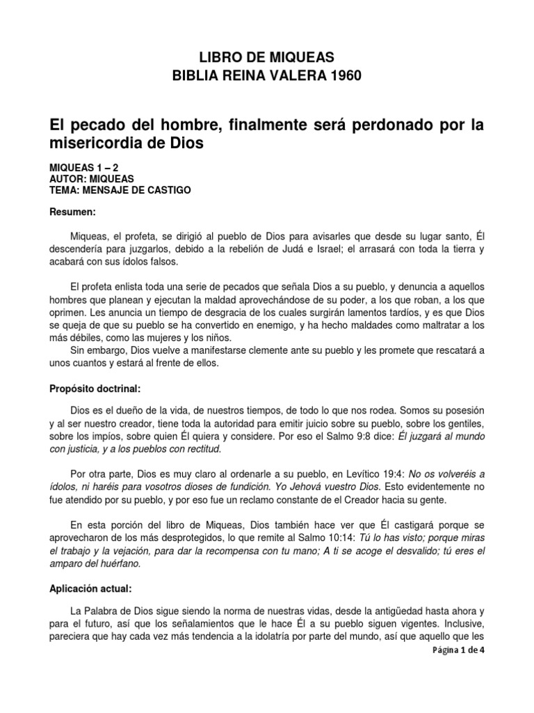 Descenderí a para juzgarlos debido a la rebelión de Judá e Israel. La época del profeta Miqueas fue de relativa prosperidad económica como parece indicarlo 2 Reyes 1535 donde se registra que Jotam edificó la puerta más alta de la casa de YHWH. El pecado del hombre finalmente ser perdonado por la misericordia de Dios MIQUEAS 1 2 AUTOR.