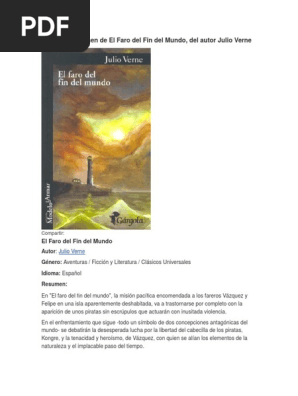 Pasa la primera noche de rodillas expresando su remordimiento y arrepentimiento a sus dioses para ser digno de entrar al faro y habitarlo. El faro del fin del mundo es una novela del escritor francés Julio Verne corregida por su hijo Michel Verne y publicada en la Magasin dEducation et de Récréation entre el 15 de agosto hasta el 15 de diciembre de 1905 y en un volumen completo el 29 de julio de ese mismo año el de la muerte de Jules. En Bellemer el dia parecía que iba a llover un pescador llamado FRANCOIS le dijo que no fuera para el lado de la costa pero HUGO igual salió a caminar y entre la neblina vio un faro que le gusto y siguió caminando a el.