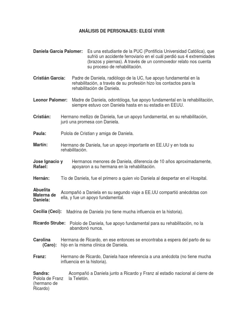Analisis De Personajes Elegi Vivir Enfermeria Cuidado De La Salud