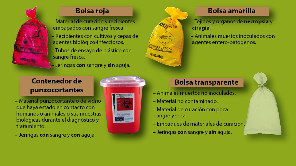 Cultivos y utensilios desechables usados en su manejo. Norma Oficial Mexicana NOM-087-ECOL-1995 Que establece los requisitos para la separación envasado almacenamiento recolección transporte tratamiento y disposición final de los residuos peligrosos biológico-infecciosos que se generan en establecimientos que presten servicios de atención. La normativa contiene 10 estatutos una introducción y una lista de apéndice para un total de 26 hojas aproximadamente.