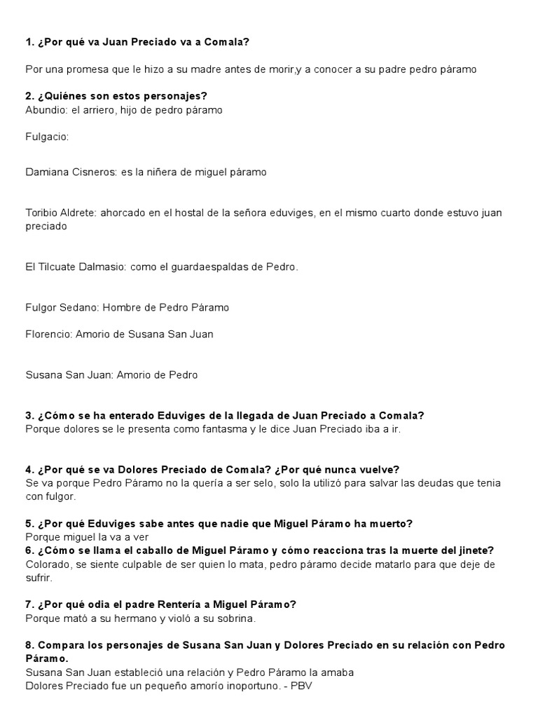 Anónimo 9 de. En el trayecto de su viaje encuentra un arriero el que dice también ser hijo de Pedro Páramo. 1- RESUMEN Y ESTRUCTURA DE PEDRO PÁRAMO CLAVE.